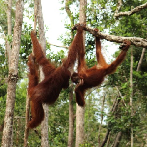In the lush treetops of southeast Asia lives the orangutan, the largest arboreal mammal. Recognizable by their striking red fur, these highly intelligent great apes spend most of their lives high in the canopy, navigating branches with powerful arms and nimble, grasping hands and feet. Science now recognizes three distinct species of orangutans: two native to the Indonesian island of Sumatra and one found on the island of Borneo, in Indonesia and Malaysia. Orangutans are considered critically endangered and face one common threat: extinction.