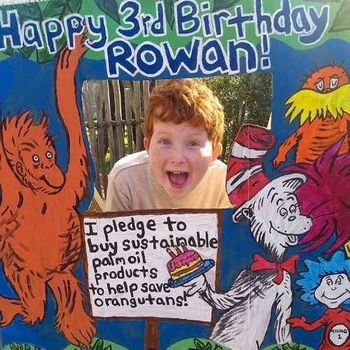 I threw Rowan a birthday party, and a young visitor named Jack Dalton found inspiration in the event’s conservation message. Captivated by Rowan’s story and the impact of palm oil on orangutans, Jack began his conservation journey, writing letters to companies, raising awareness, and later becoming a youth ambassador for orangutan causes.”