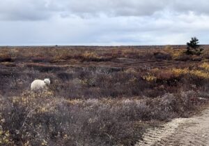 “We flew to Churchill to stay in the Frontiers North Tundra Buggy Lodge outside town. We were joined there by PBI staff, scientists, and our NNOCCI trainers. On the way to the lodge, we were lucky to see a female bear out on the coastline, sleeping and waiting for the ice to form.