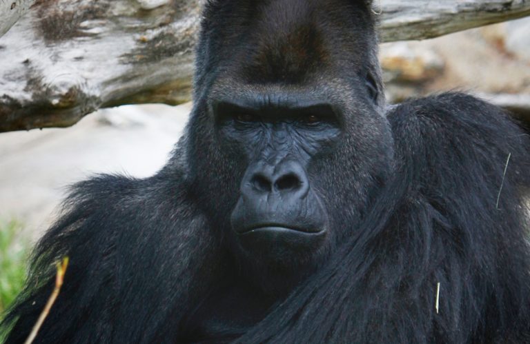 They may look fierce, but Gorillas are “gentle giants,” eating only vegetation and only becoming aggressive when threatened.