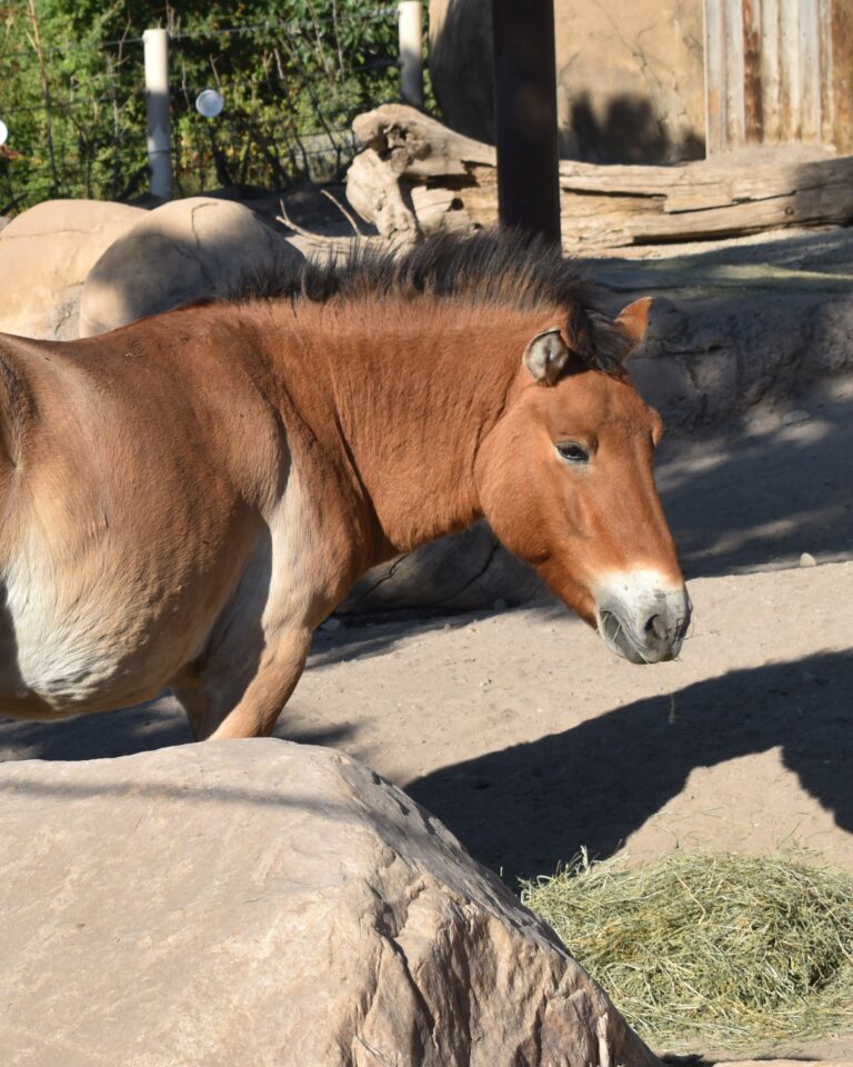 All four ungulate species housed at the High Desert Oasis face extinction in the wild. Like animals worldwide, they are threatened by human expansion, habitat destruction, and climate change. In addition, rhinos and zebras are poached for body parts, and Mongolian wild horses and wild Bactrian camel’s bloodlines are threatened by hybridization with domesticated horses and camels.