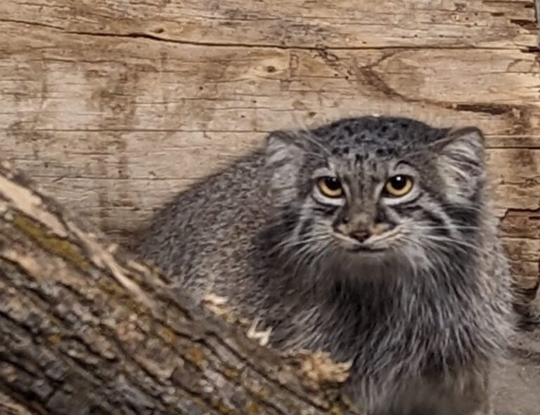 Pallas’ Cats are most active at dawn and dusk, and are solitary except during mating season or when a mother is caring for her kittens. Pallas’ cats den in small caves and cracks and in the abandoned burrows of marmots, foxes and badgers. They are adapted for life in cold climates where temperatures may reach lows of minus 60 degrees Fahrenheit. Their extremely thick and heavy coats and long bushy tails help them combat the cold.